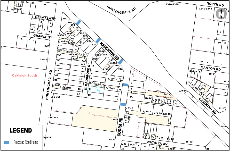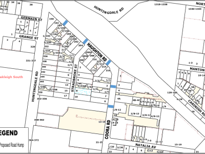 To respond to community concerns and to improve safety, we’re proposing to install five (5) modified flat-top road humps between Huntingdale Road and Natalia Avenue.