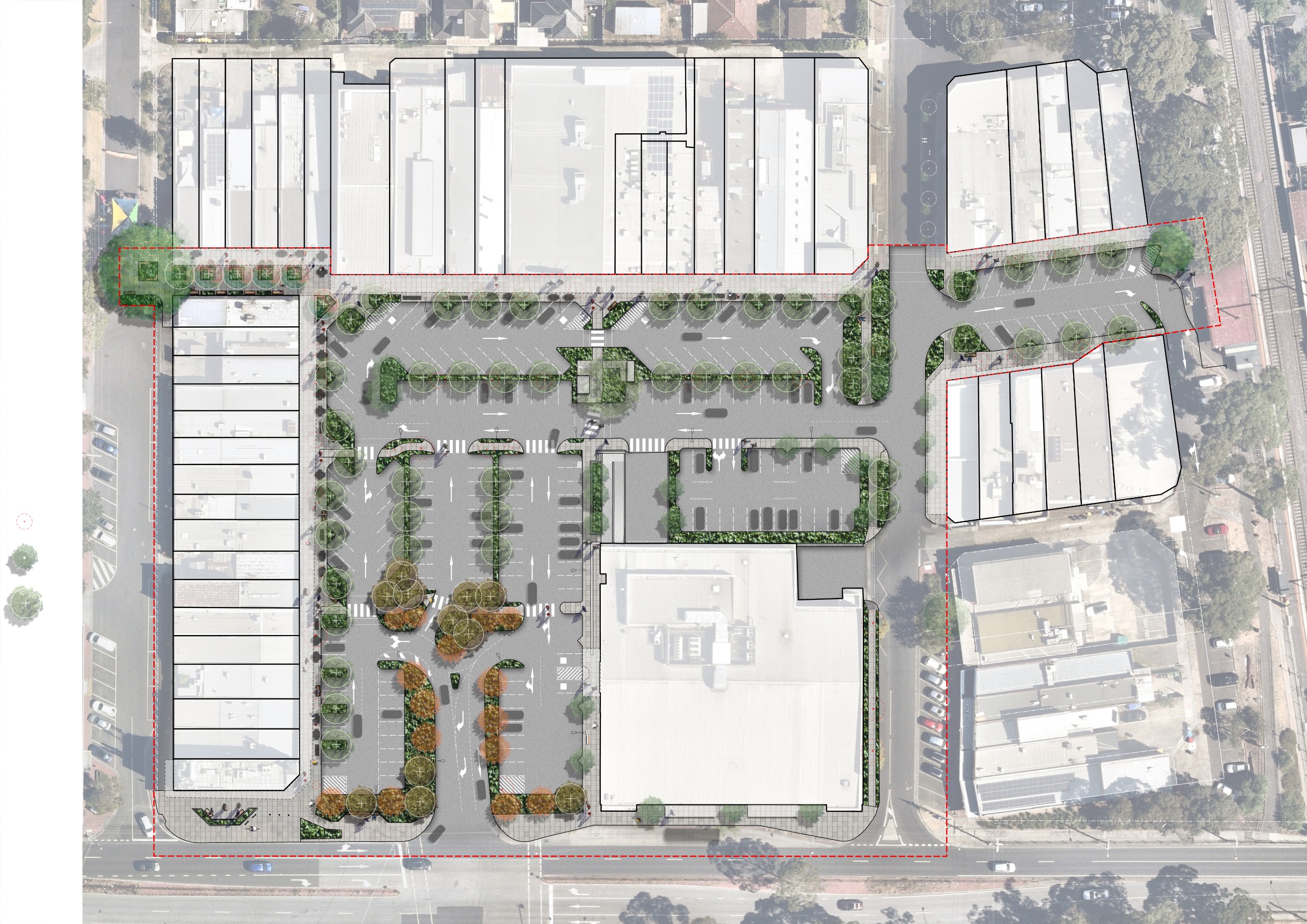 - Consolidates car park entry/exit points, creating clearer circulation paths for vehicles.